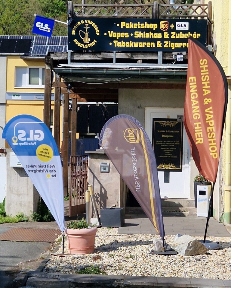- Den Eingang zum Shisha & Vapeshop (sowie den Paketshops) finden Sie an der linken Ecke des Gebäudes.